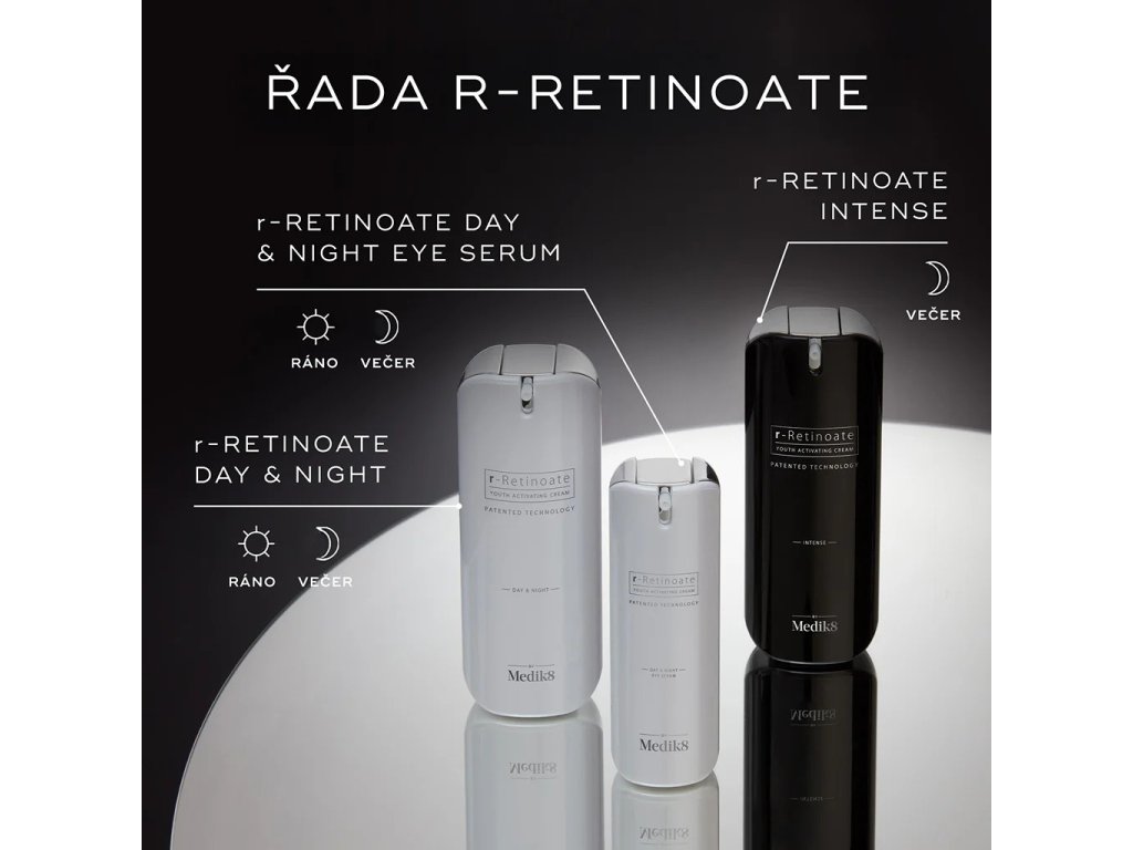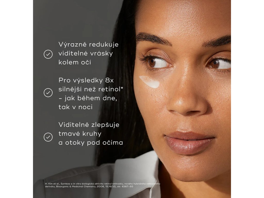 R-RETINOATE Day & Night Eye Serum využívá sílu revoluční molekuly retinyl retinoate, která viditelně vyhlazuje jemné vrásky a rýhy, zpevňuje pokožku a zanechává oční okolí svěží a omlazené. Na rozdíl od tradičních produktů s vitamínem A je toto sérum vhodné pro použití jak ráno, tak večer, a první výsledky uvidíte již za čtyři týdny.